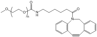 mPEG-DBCO(甲氧基聚乙二醇二苯并環(huán)辛烯)是一種聚乙二醇化DBCO(二苯并環(huán)辛炔)衍生物,在沒(méi)有任何金屬催化劑的狀態(tài)下mPEG-DBCO可以與疊氮基產(chǎn)生一種生物可加工的反應(yīng)反應(yīng),其能夠使兩種分子在水溶液中綴合。
